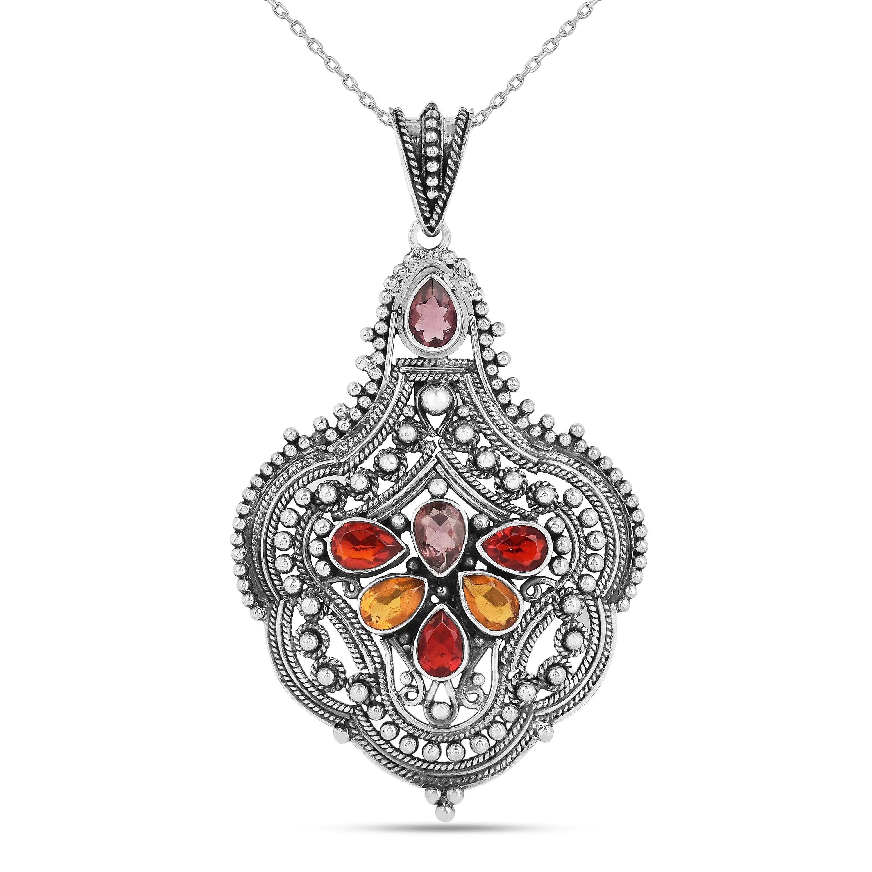 Colgante de granate y citrino en plata de ley 925